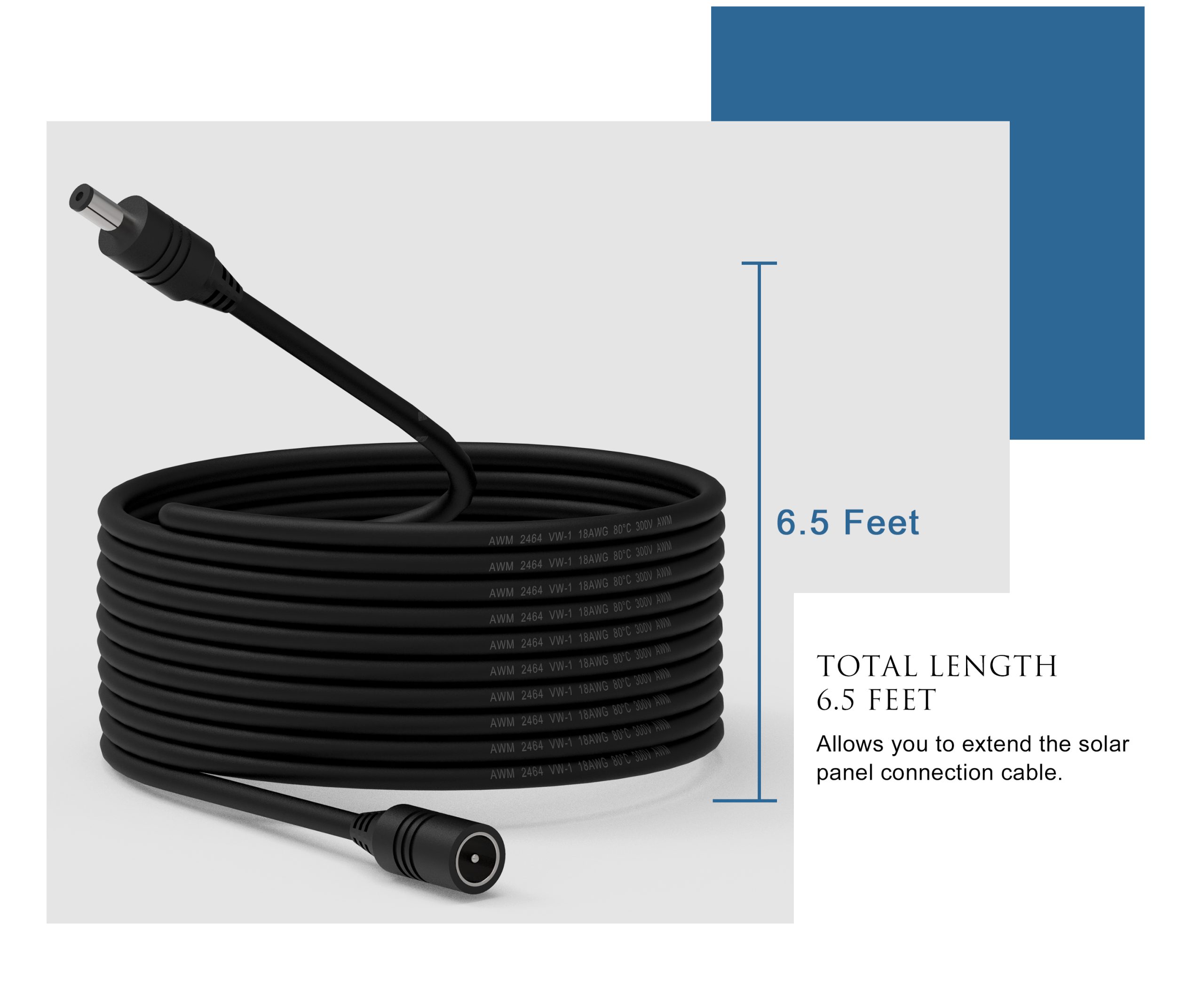 La lunghezza del cavo di 2 metri (6,6 piedi) offre opzioni di installazione flessibili, offrendoti più possibilità di scelta per la posizione e massimizzare l'efficienza del pannello solare.