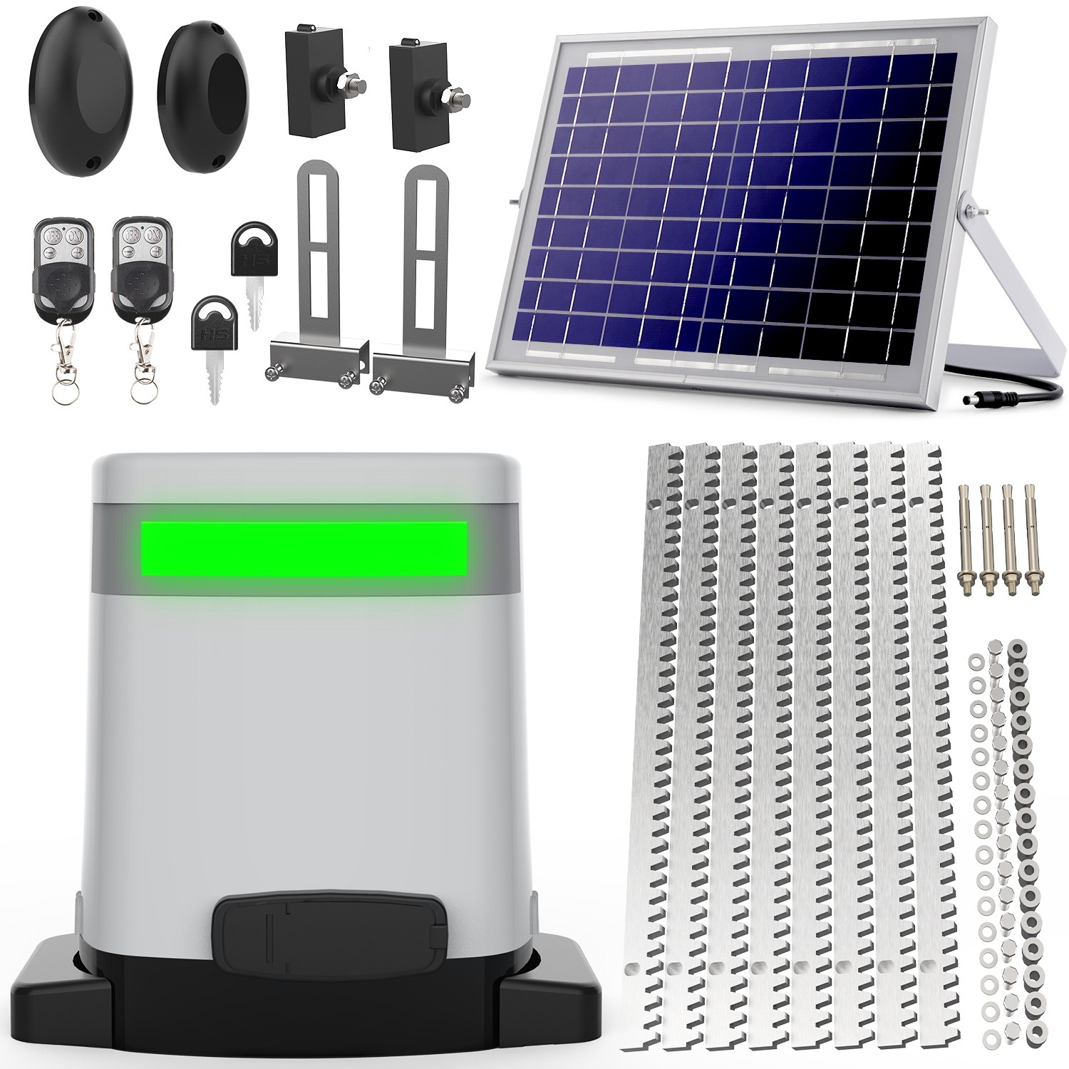 Apricancello scorrevole da 1400 libbre con WiFi e predisposizione per energia solare, batteria di backup integrata, pannello solare da 20 W incluso, cremagliere incluse, telecomandi e sensore IR.