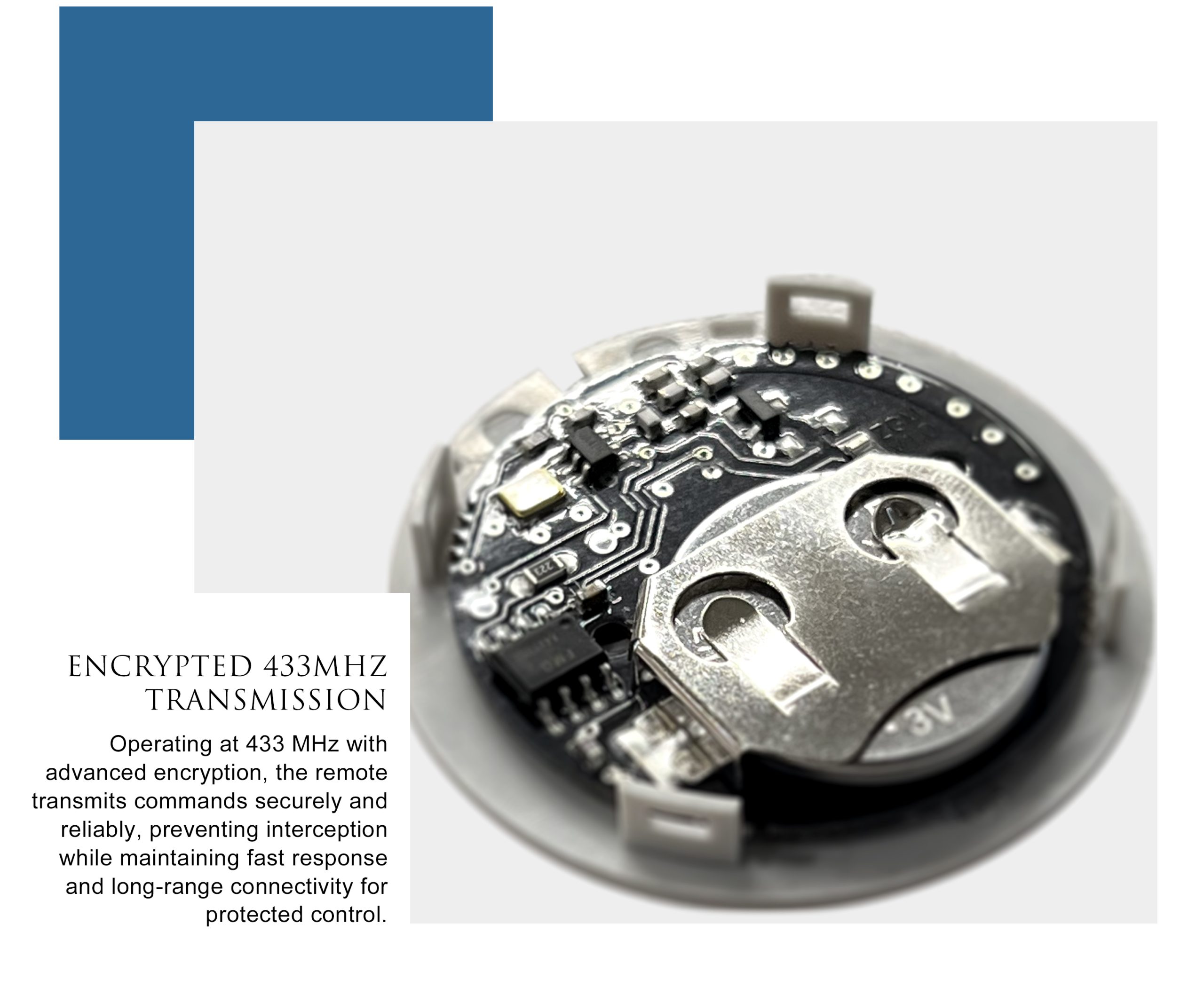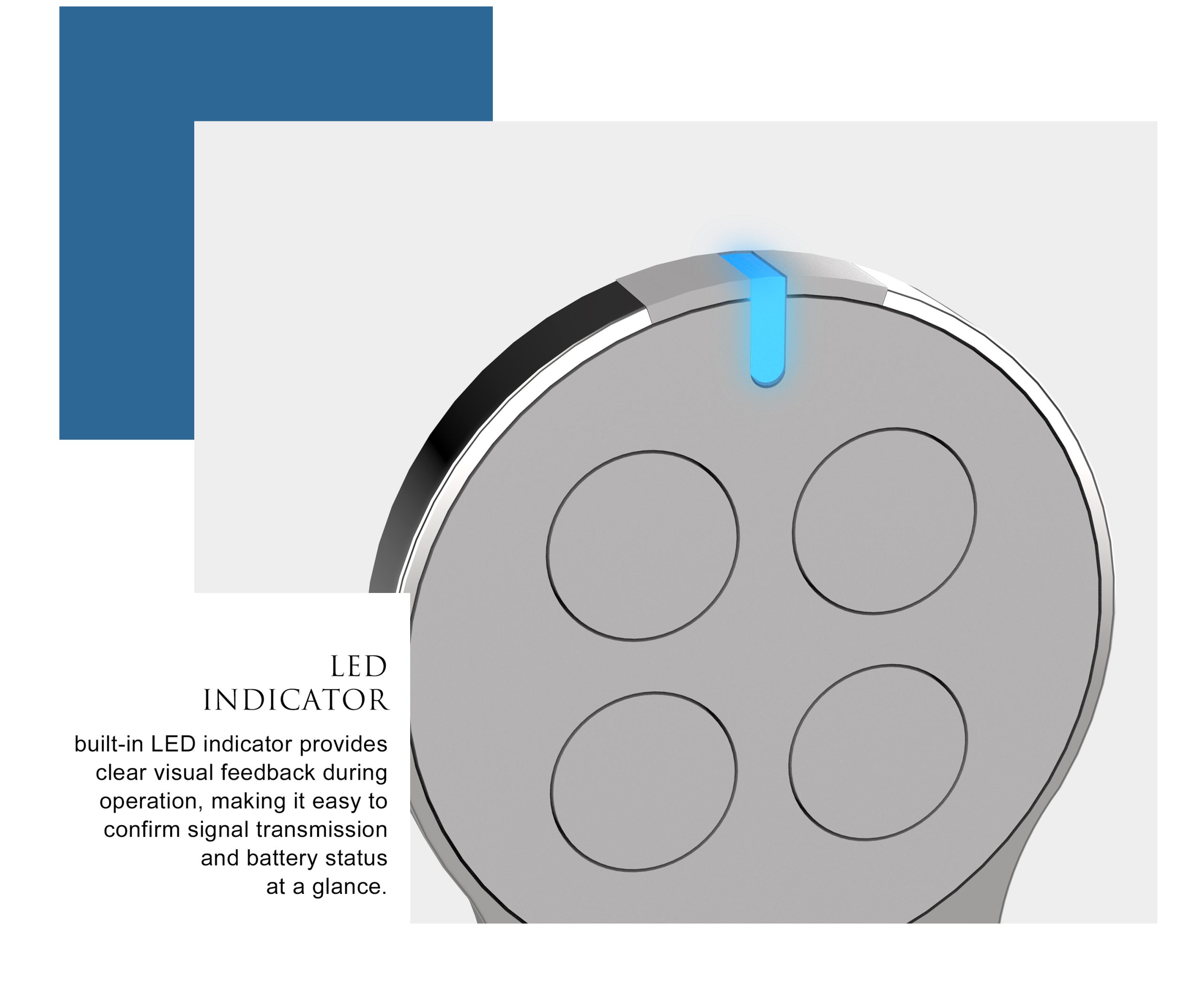 Telecomando rotondo a 4 pulsanti per sistemi di cancelli a battente MS600/MS650 con modalità pedonale