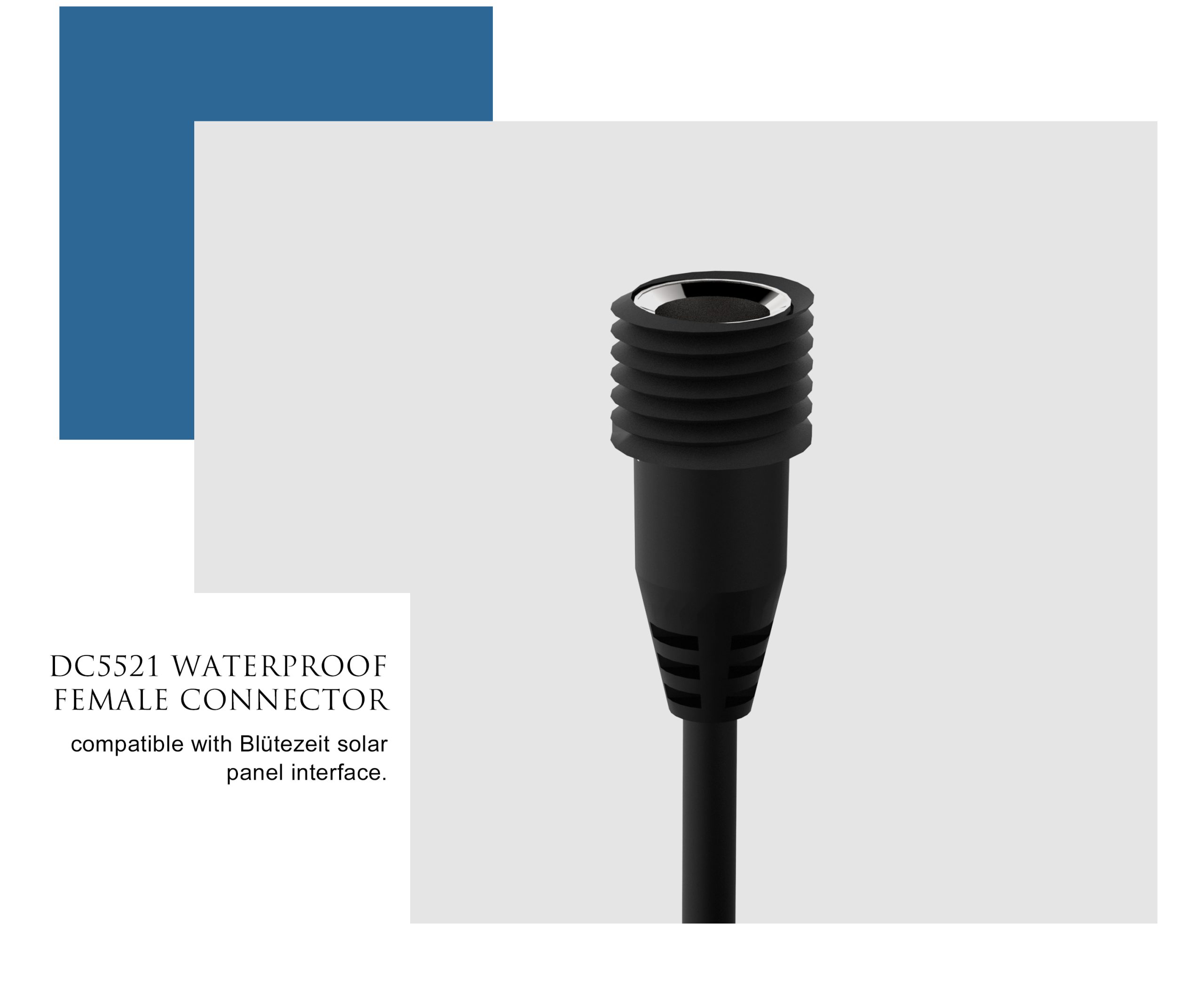 - Connector Type: 1 Female to 1 Male DC plug (5.5mm × 2.1mm) with waterproof protection