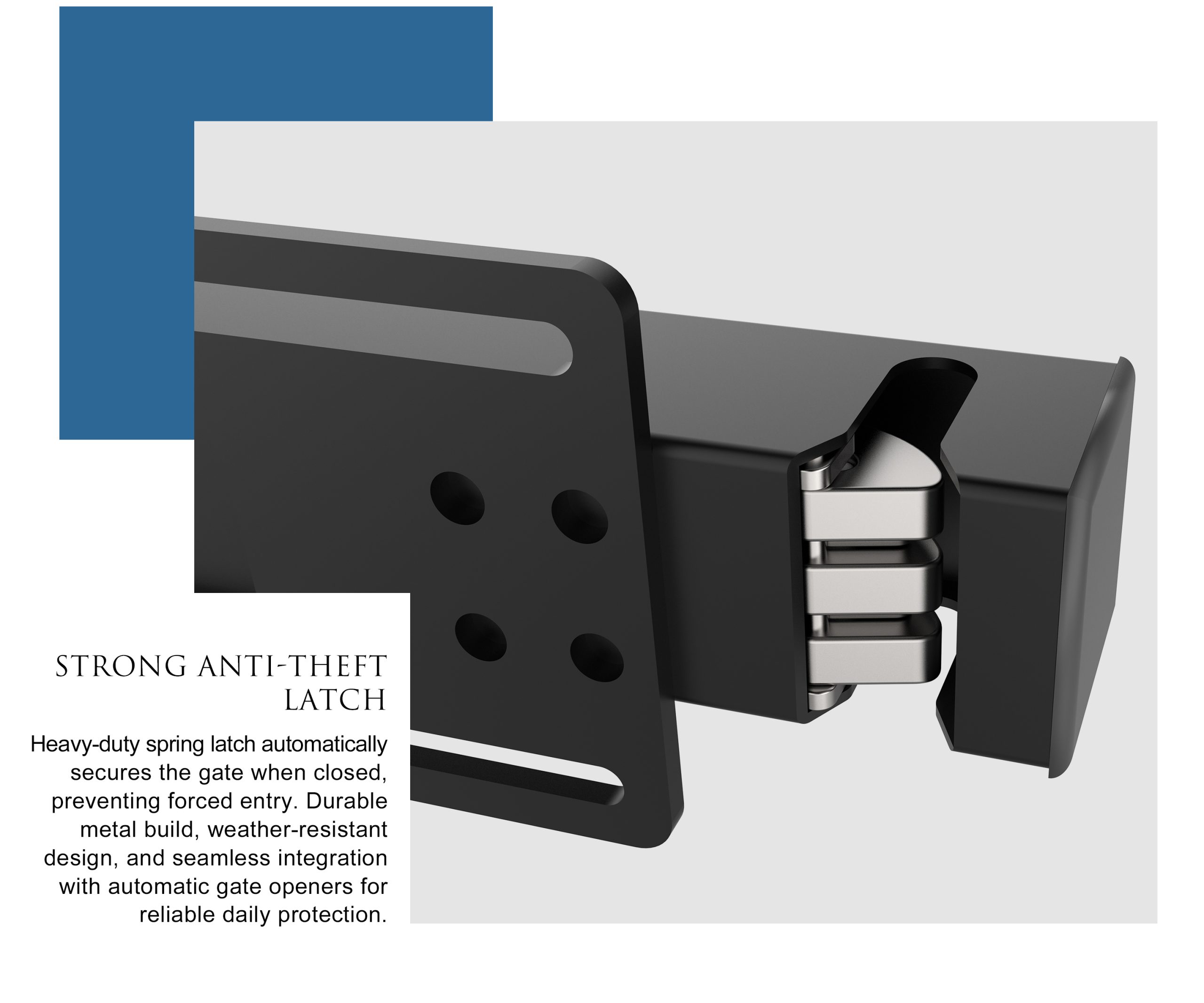 - 🔒 Automatic Locking & Unlocking – The gate locks and unlocks automatically when your swing gate opener is activated. No extra steps are needed for secure entry every time.