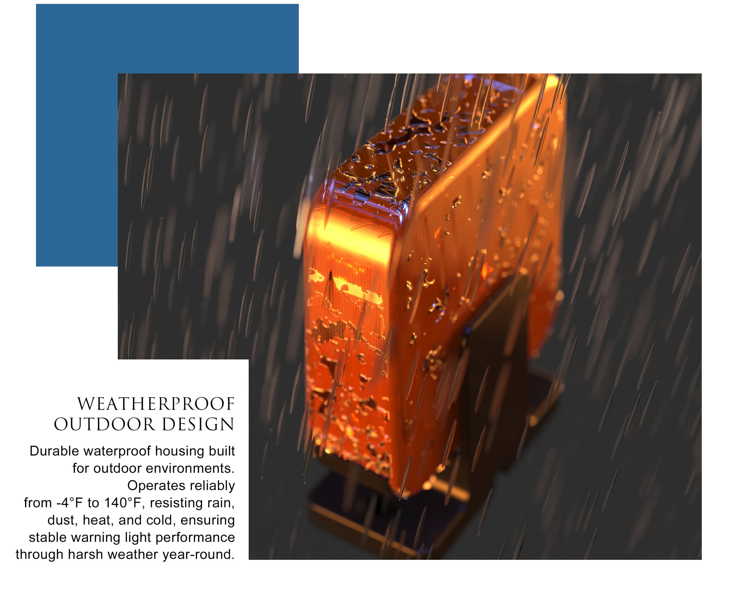 Unique Square Design – Distinctive square LED warning light provides high visibility for enhanced safety, ideal for installation on gate posts, walls, or rooftops.