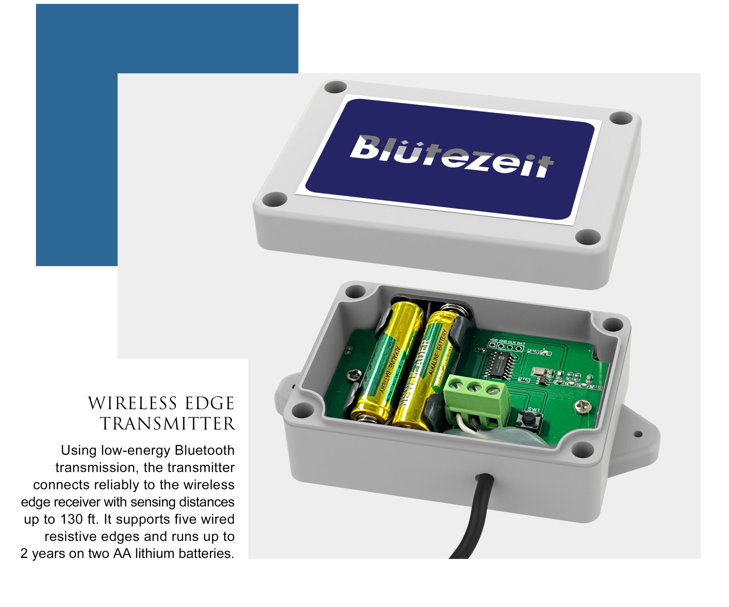 Wireless Transmitter & Receiver – The transmitter connects directly to the safety edge while the receiver mounts on the control box, providing reliable wireless communication and simplifying installation for sliding, swing gates and garage doors.